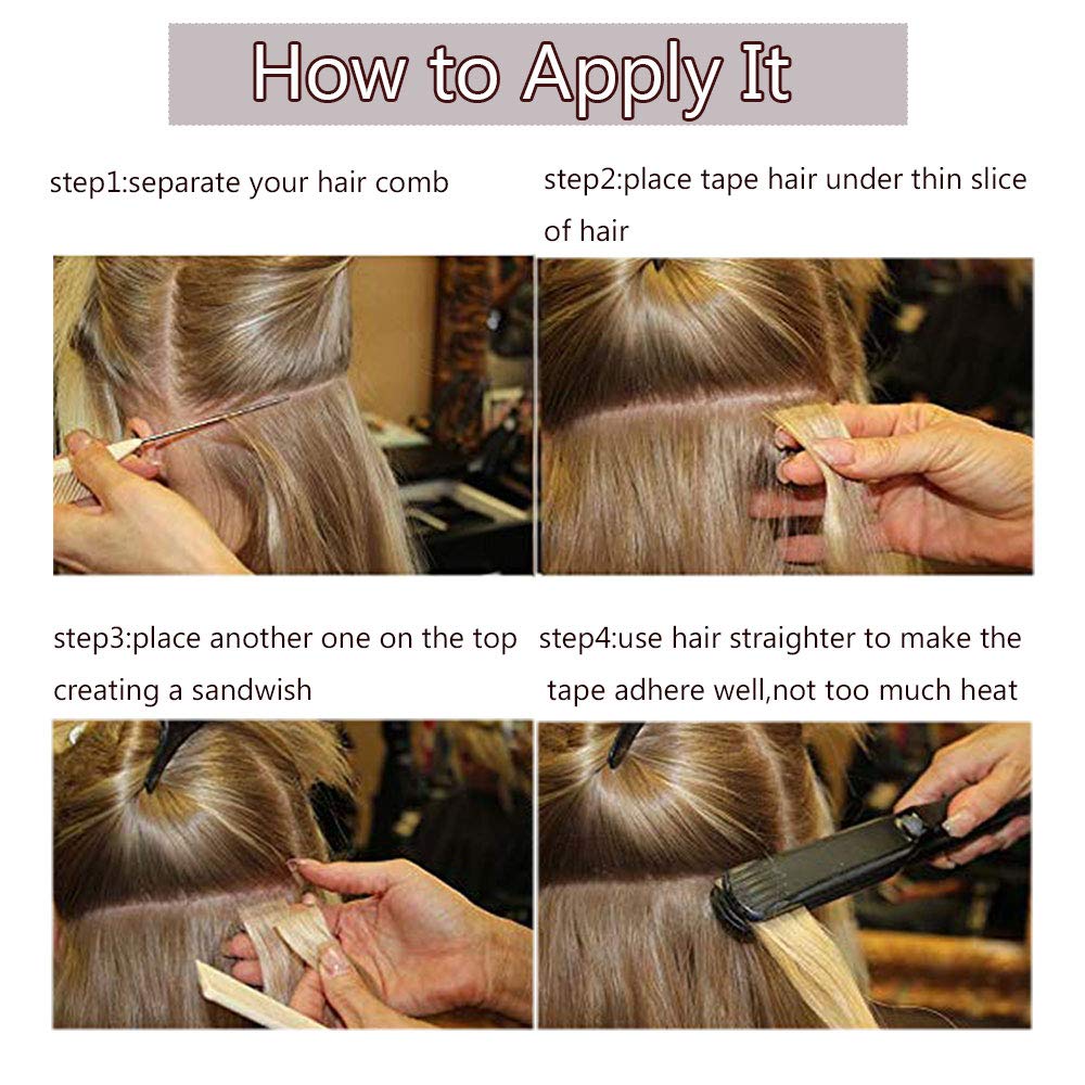 - ❤ Reusable hair extensions with hypoallergenic invisible tape, easy to install and stay long with your hair,can be re-used simply by adding new tape.And the package includes 10 extra tapes for exchanging.