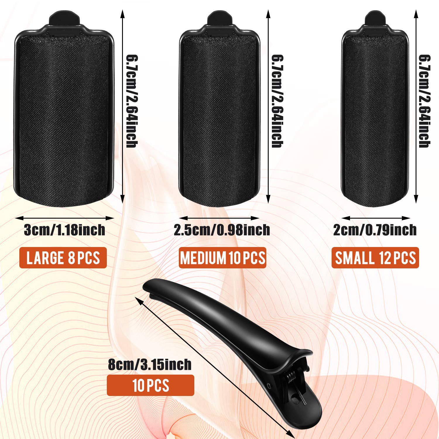 40 Pieces Satin Cloth Foam Rollers Set, Hair Rollers Hair Perm Rods 3 Size Hair Curlers with Plastic Duck Teeth Hair Clips for Hairdressing Styling (Black) by WILLBOND Store
