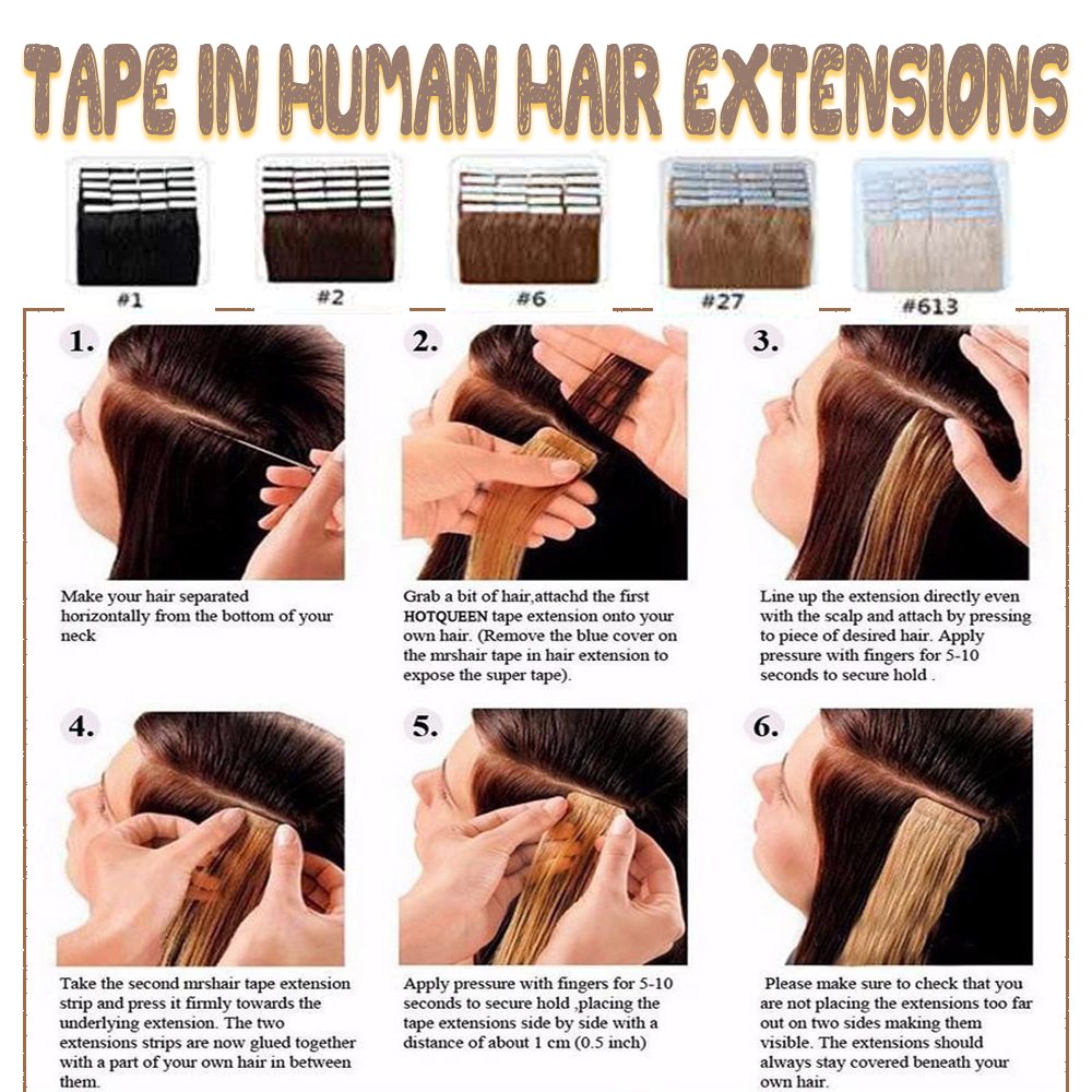 - About TAPE: strong glue hypoallergenic double sided tapes (0.31*1.57 inch).Each package contains 10pcs extra tapes. We suggest to adjust the tape every 4 weeks to keep the hair stay well. Heating can make the tape sticker.
