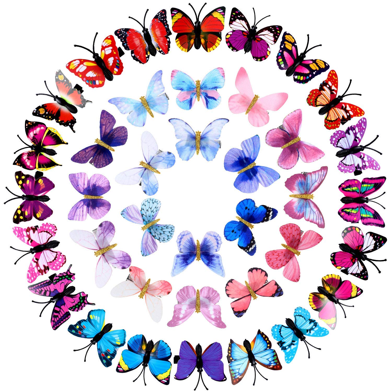 42 Pieces butterfly hair clips colorful butterfly barrettes 3D glitter butterfly hair accessories for women girls teens party favors Features: Long-lasting use: These colorful butterfly barrettes are made of quality material, which feature durable and not easy to break, portable to store and carry, convenient for long-lasting use. Decorative hair accessories: These butterfly hair accessories come with butterfly design in bright colors, eye-catching and serve as nice decorations, suitable to match with your different styles of outfit. Specifications: Material: organza; fabric with alloy Color: as pictures show Package includes: 42 x Butterfly hair clips Warm notice: The 3D wings will be flat for packaging and long-distance transportation, when you receive them, please fold the wings gently for looking better. The colors may exist slight difference due to different screens.