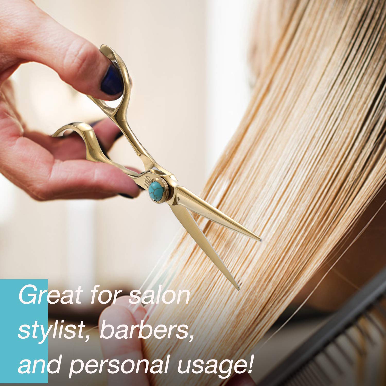 - Ergonomic, Balanced Handle for Extreme Comfort: The highly ergonomic, balanced handle with provides maximum control and comfort, offset handles easily fit the hand so the wrist, elbow, and shoulder do not tire easily when opening or closing the hair trimming scissors, the advanced adjustment tension system is easily adjustable and precisely distributes tension from pivot to tip