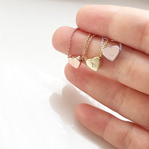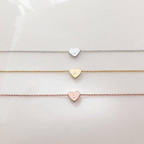 Details: Heart Necklace, Graduation Gift, Personalized Wedding, Flower girl gift Kids Junior Bridesmaid gift sister Material Initial Charm: Gold Plated Heart Charm: Gold Plated / Silver Plated / Rose Gold Plated Chain: Silver Plated /Gold Plated / Rose Gold Plated Size Charm: approx. 7mm x 7mm Chain: 17.5 inches (let us know if you need shorter or longer chain at checkout)