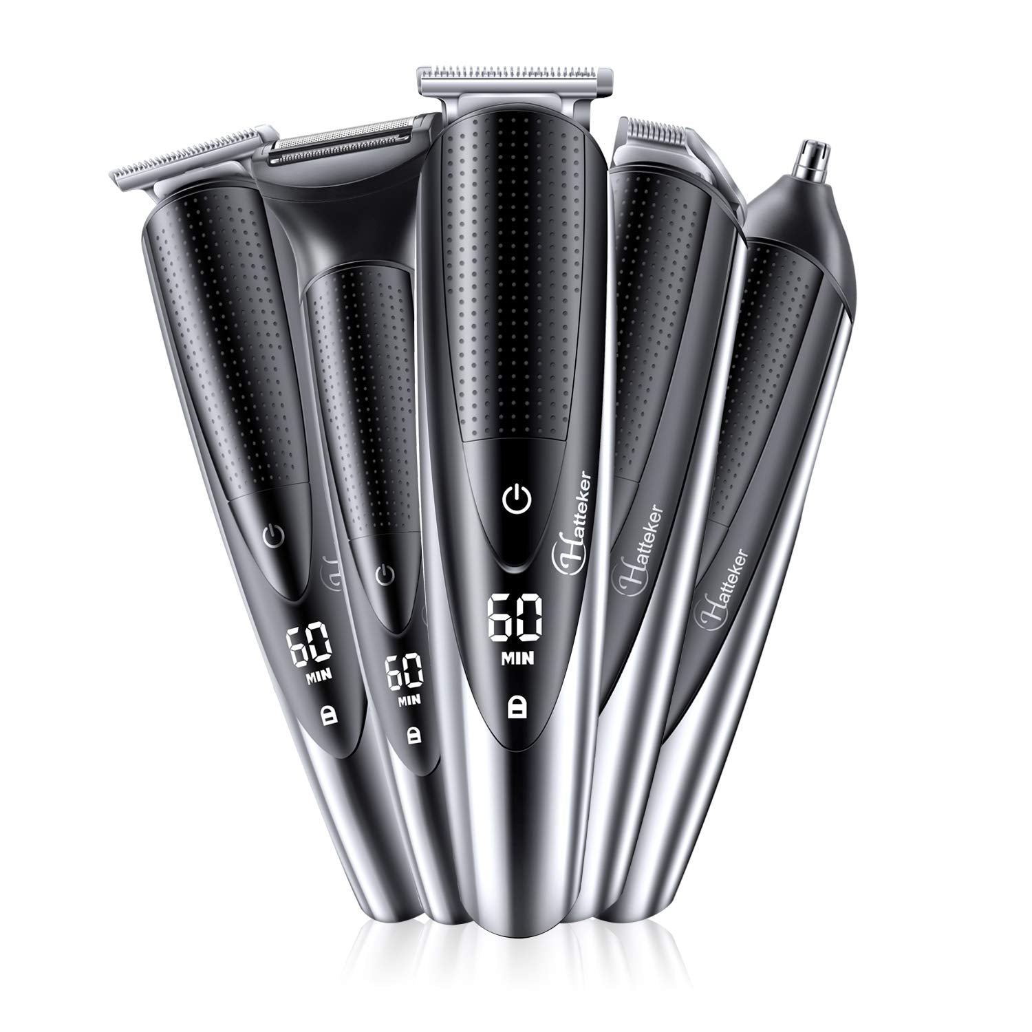 Hatteker Mens Hair Clipper Beard Trimmer Grooming kit Hair trimmer Mustache trimmer Body groomer Trimmer for Nose Ear Facial Hair Cordless Waterproof 5 In 1