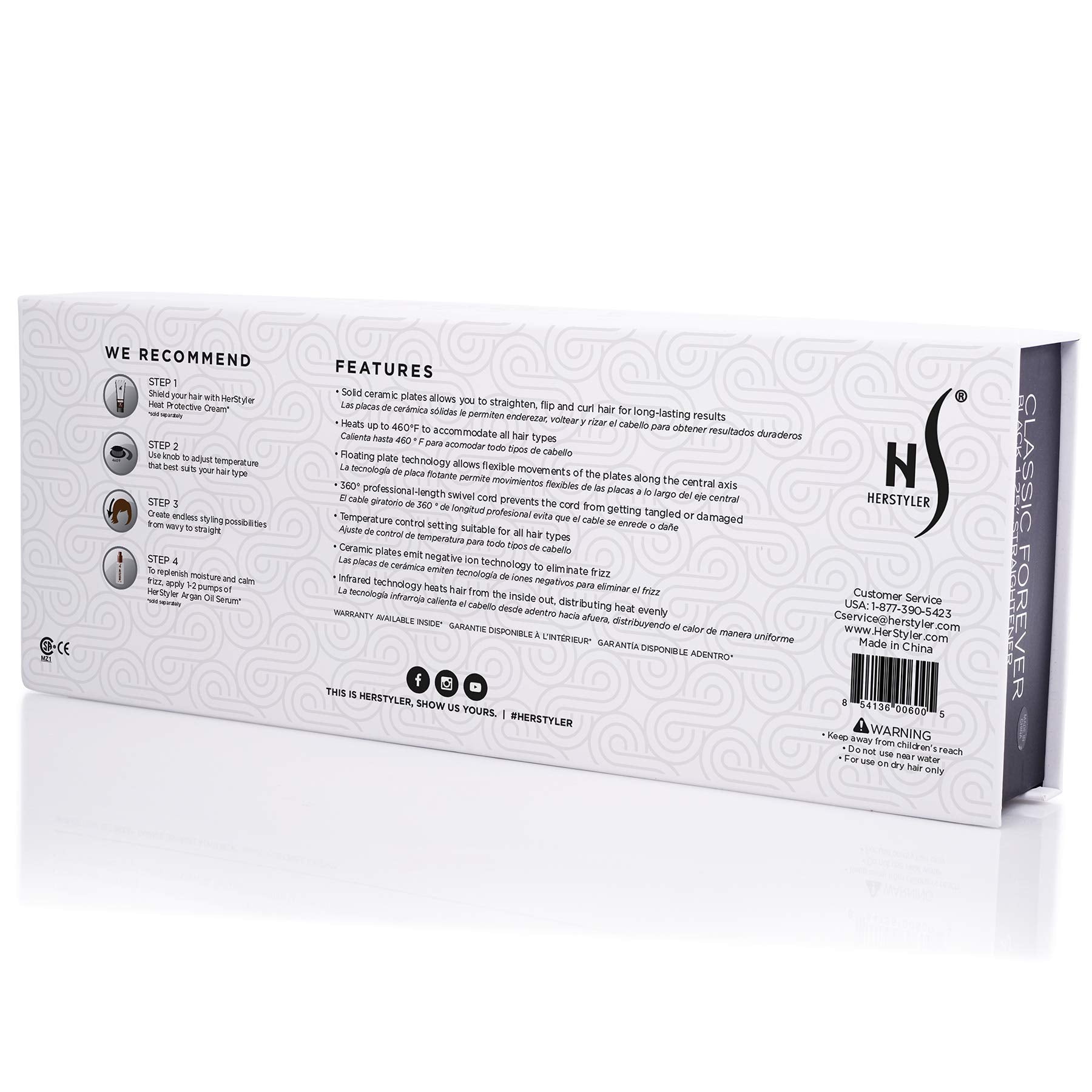 - FRIZZ-FREE STYLING : The Herstyler Forever replenishes hair making it frizz-free and silken in texture. A power-horse large flat iron that’s worthy of you. Let your hair breathe easy!