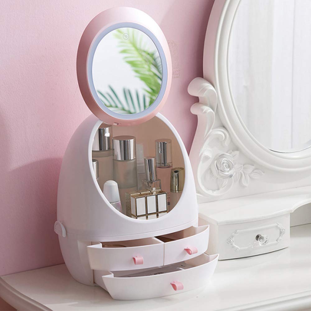 - ✅【LED MAKEUP ORGANIZER】Zinnor new upgraded 2 in 1 makeup organizer with LED lighted mirror, high grade eco-friendly material, perfect swan egg shape. Can be used as cosmetic display case, LED makeup mirror, jewelry and cosmetic storage display boxes or other applications