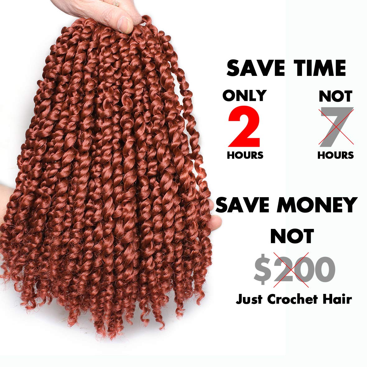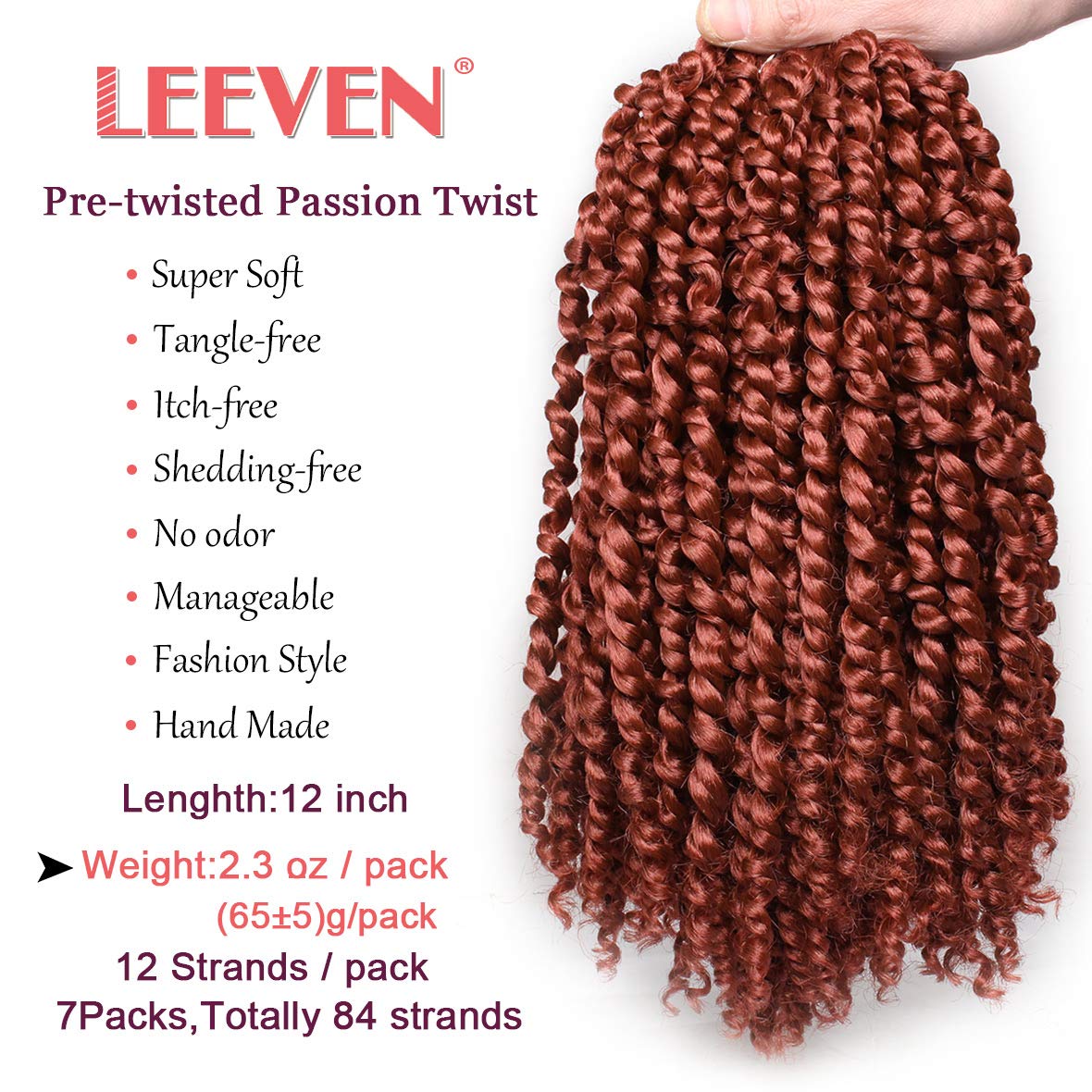 Leeven 12 Inch 7 Packs Bob Pre Twisted Passion Twist Crochet Hair With Curly Ends Copper Red Synthetic looped Passion Twists Braids Hair 350# Bohemian Braiding Hair for Black Women 12 Strands/Pack