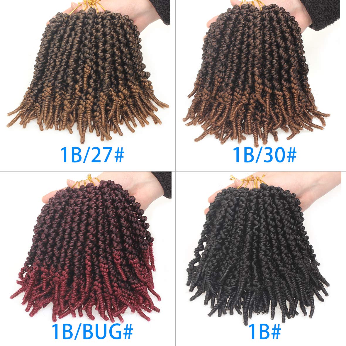 • Hair Material: High Quality 8 inch short Pre-twisted bob Spring Twist Crochet Braids Hair makes you more charming.100% Low Temperature synthetic fiber, It's Harmless to human.