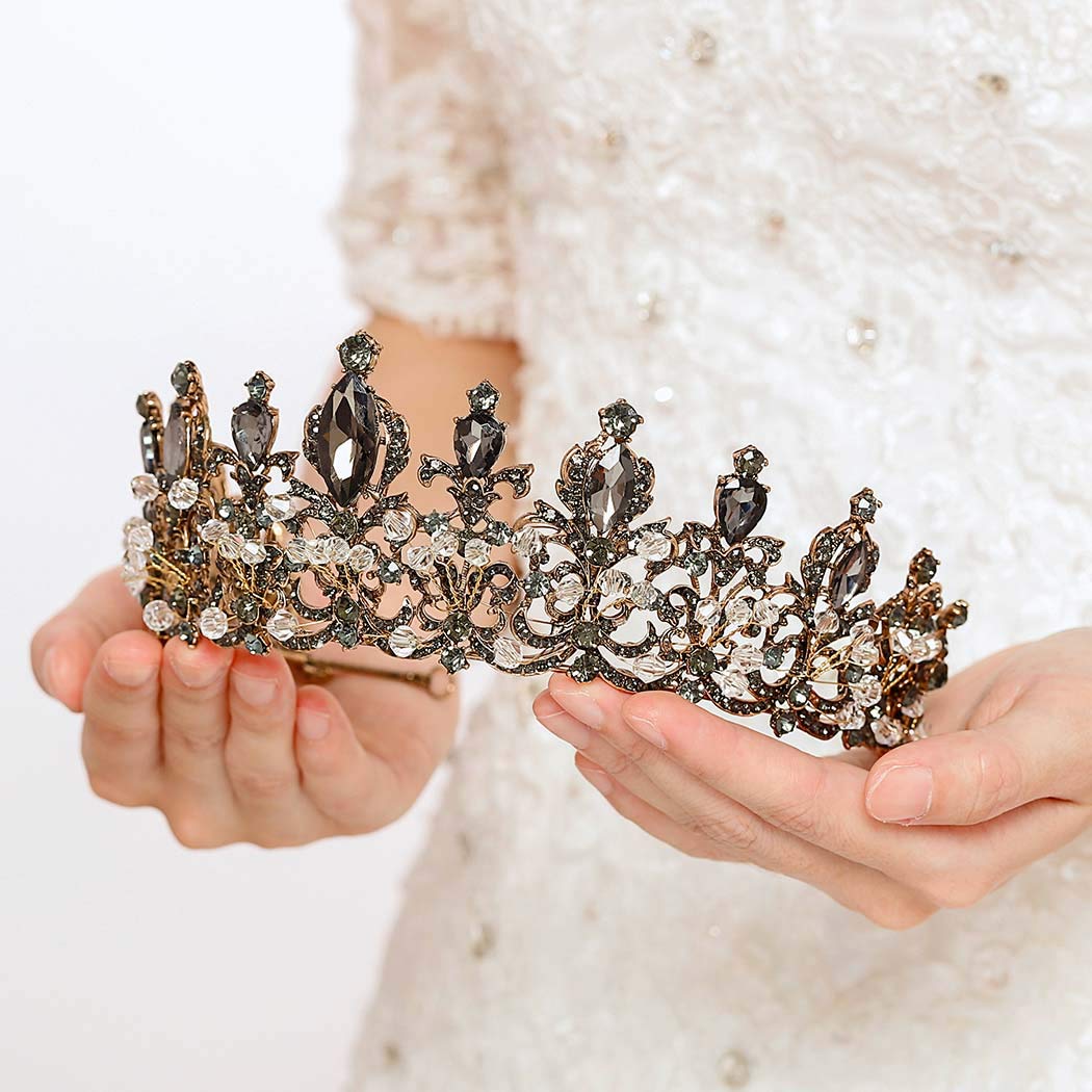 Nicute Baroque Crowns and Tiaras Black Bride Wedding Rhinestone Tiara Queen Crystal Headpieces Jewelry for Women and Girls