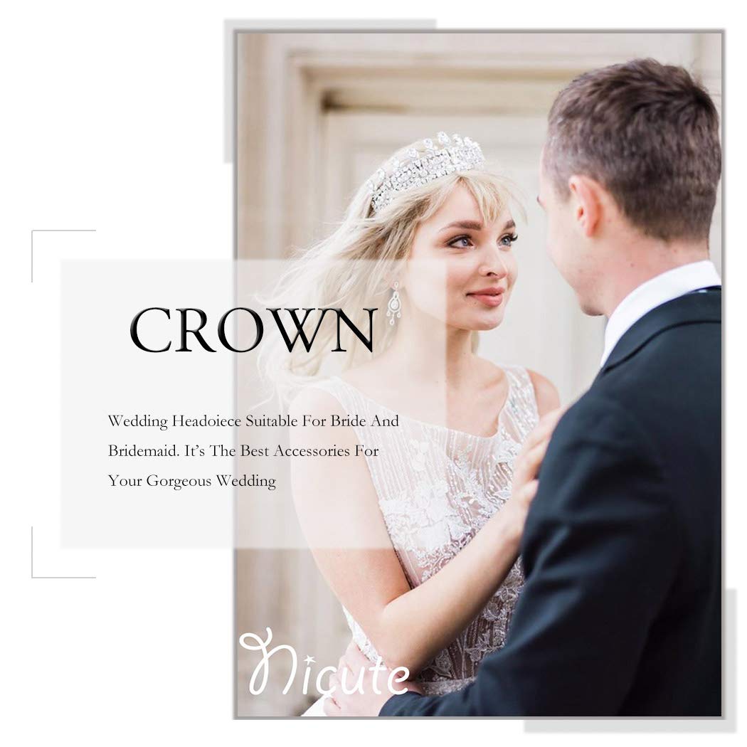 Nicute Bride Wedding Crowns and Tiaras Gold Crystal Bridal Princess Crown with Earrings Opal Headpieces for Women and Girls