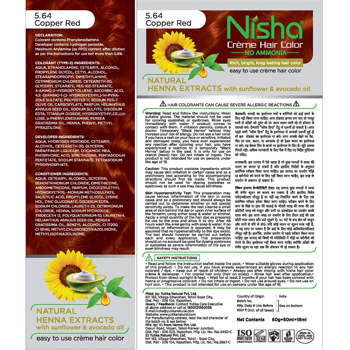 Nisha Creme Hair Color 5.64 COPPER RED (60gm + 60ml + 18ml Nisha Conditioner with Natural Herbs)