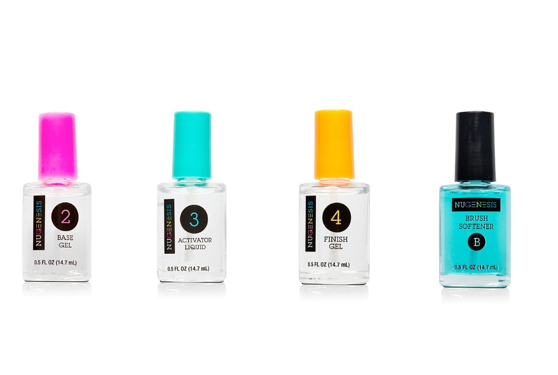 - Set of 4 - Base Coat, Activator, Finish Gel and Brush saver