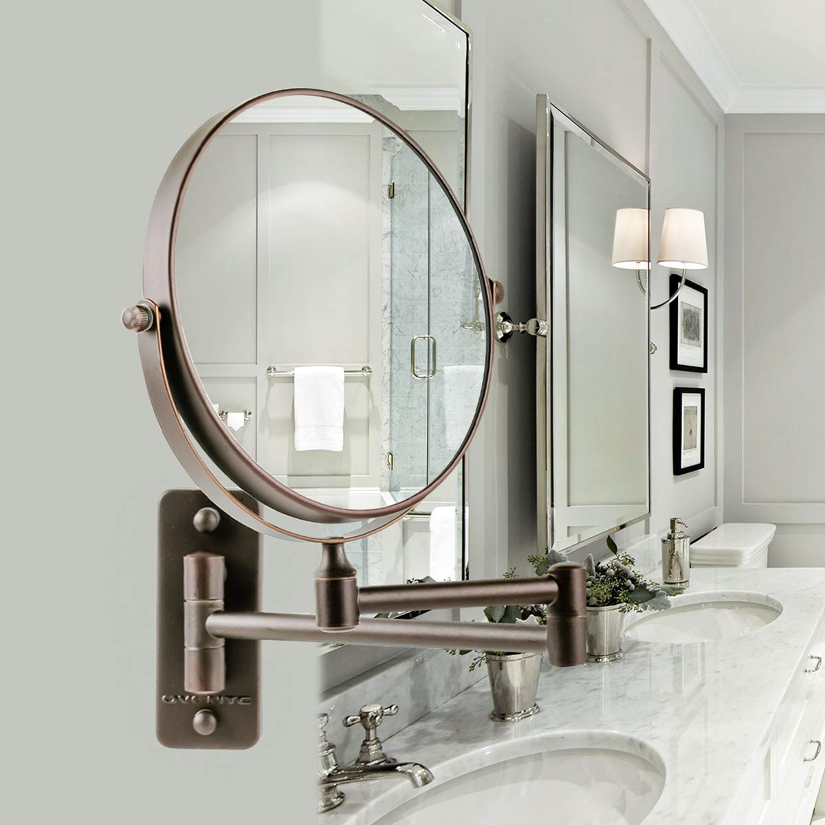 Ovente Wall Mounted Vanity Makeup Mirror 9 Inch with 10X Magnification and Extendable Arm, Double-Sided with 360 Degree Swivel Mechanism and Zero Distortion, Antique Bronze (MNLFW90ABZ1X10X)
