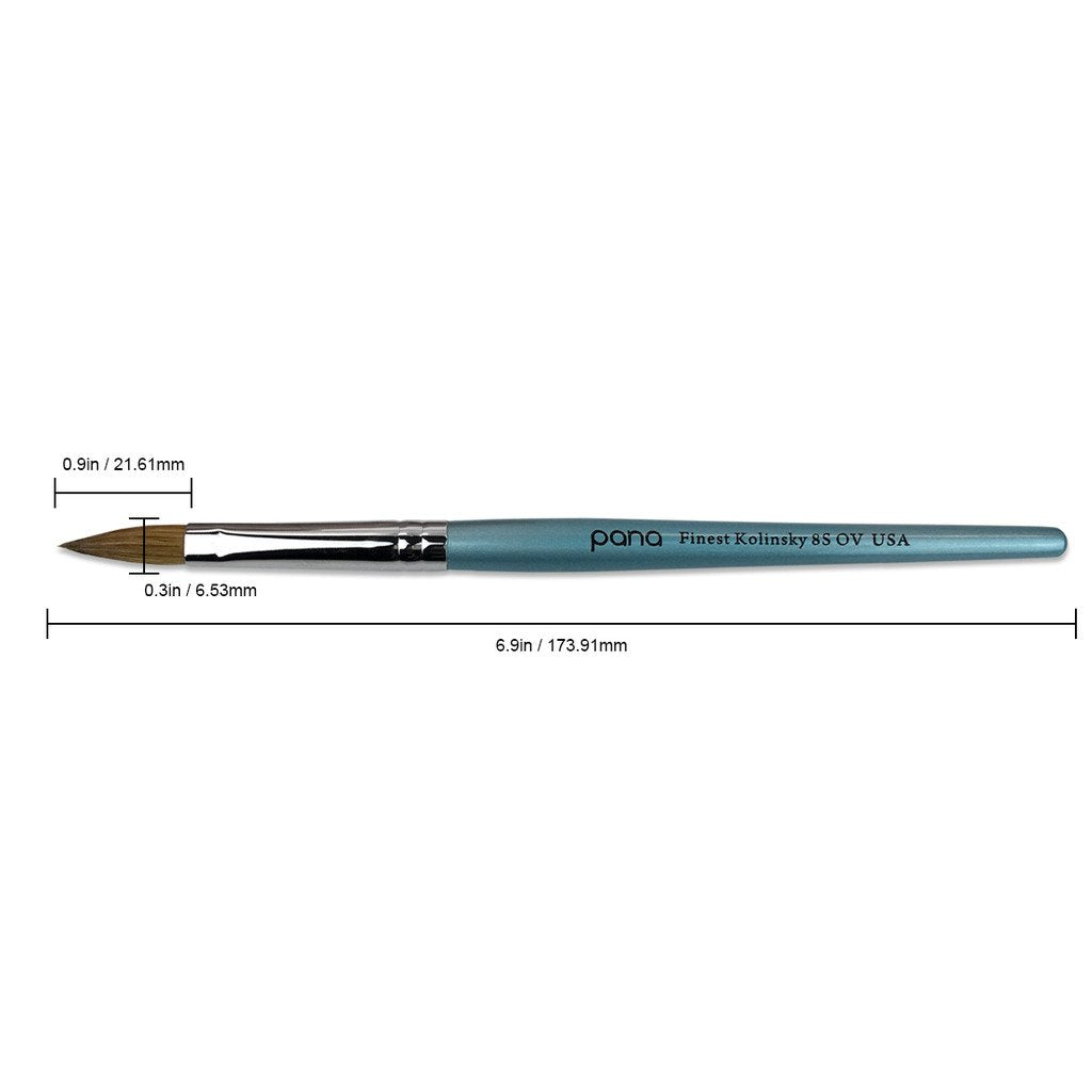 Pana USA Acrylic Nail Brush100% Pure Kolinsky Hair New Teal Wood Handle with Silver Ferrule Oval Crimped Shaped Style (Size # 8)