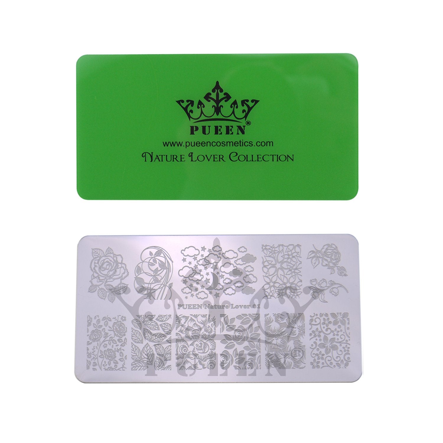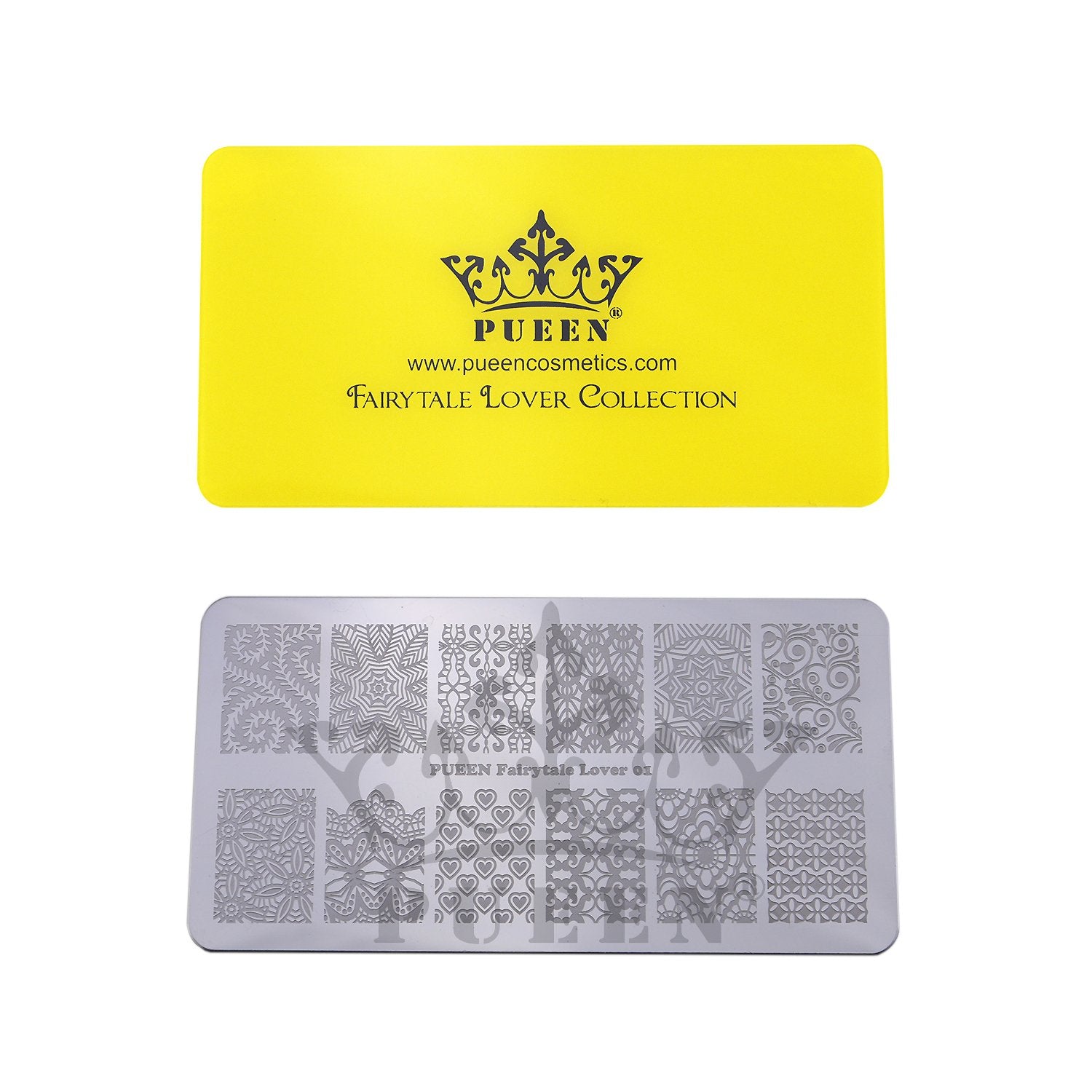PUEEN Nail Art LOVE BOX - 4 Plates from Lover Collection The newest image plate from the nail art experts at PUEEN! PUEEN Nail Art Stamping Image Plate Collection - LOVE BOX was designed and created from the ground up to introduce exciting new designs to nail art stamping. There are very unique and no other nail art image plates look like them. Each plate measures 125x65mm with plastic backing for easy, comfortable handling and a protective nylon screen. All plates are made from high grade stainless steel and are plastic backed to prevent scratching during storage. This fantastic collection comes with the following items: Fairytale Lover 01 x 1 Nature Lover 01 x 1 Geo Lover 01 x 1 Fancy Lover 01 x 1 Stamper x 1 Scraper x 1