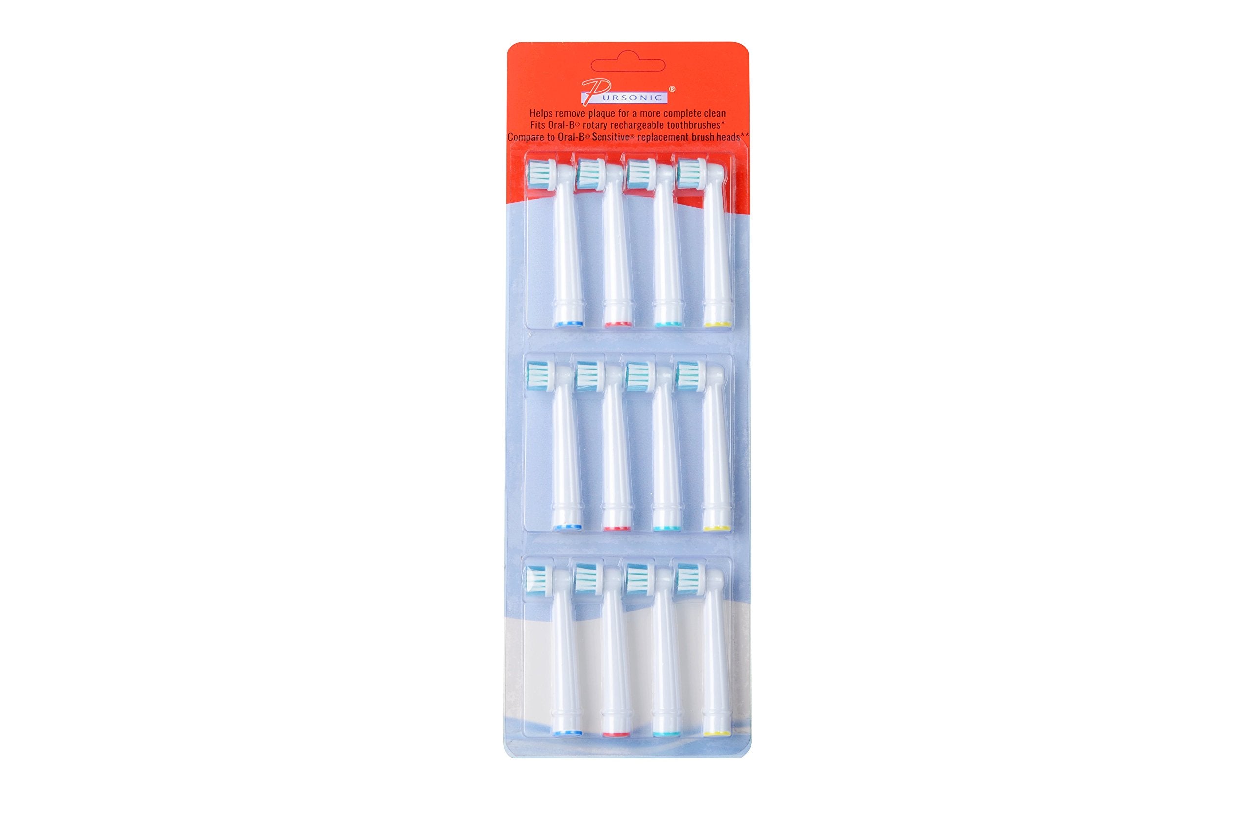 Pursonic EBS17- 12 Pack Power Sensitive Replacement Brush Heads for Oral-B, 12 Count