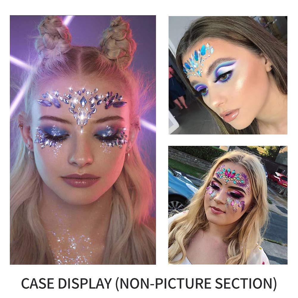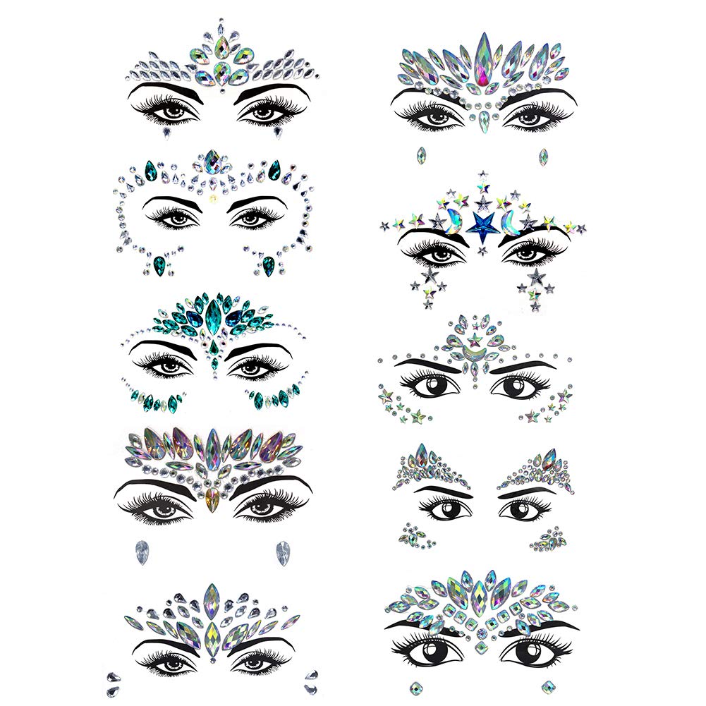 **EYE CATCHING DESIGN:** Each piece of Carnival jewelry has a unique design, you can use it on your face, forehead, eyebrows, cheeks, back, arms, etc, Wear these face gems and chest gems on a variety of body parts to make you more attractive. It can also be used cleverly to create different shapes and spell out the patterns you want. **WIDELY USED:** This mask is suitable for any dance, carnival, party, dress up game, masquerade party, costume, Christmas, birthday, photo taking, music festival or any other celebration night. **EASY TO USE:** First, make sure that your face and body are clean and dry, then tear off the stones on the lower part or chest, and then paste them on your face or body according to the design pattern. **REMINDER:** 1\. Attention! Face gems, body gems and sequins are not suitable for children under 5 years old. For safety, please keep away from children; 2\. In order to achieve better effect, please paste face jewelry before make- up; 3\. Please use sensitive and allergic skin carefully (if irritation occurs, please stop using); 4\. The facial jewelry film is disposable. If you want to reuse it, you need to use mascara or body glue again to avoid falling. 5\. Due to different monitors, pictures may not reflect the actual color of the product. Thanks for Your Patronage!