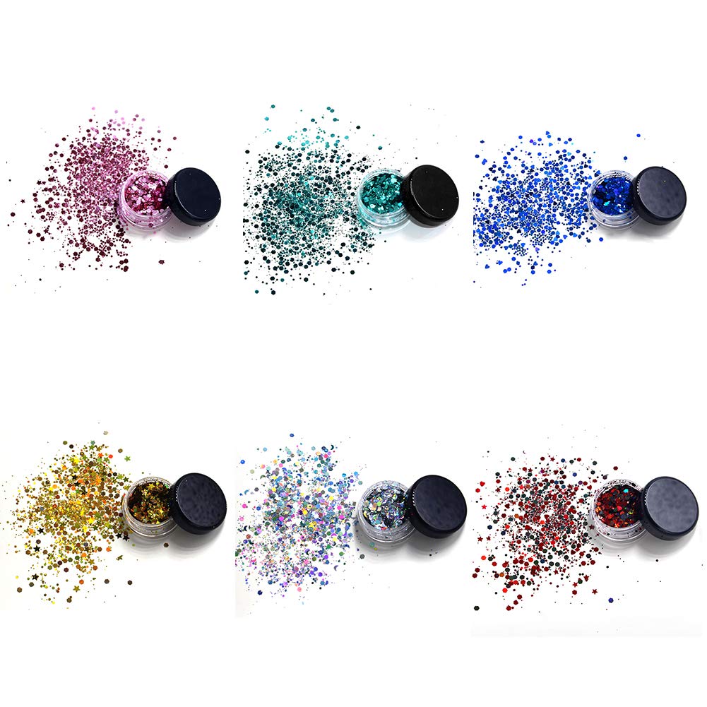 - ? [Set contents] 10 different styles of face gems; (the gems are self-adhesive and do not require glue), 6 boxes of different color face sequins.