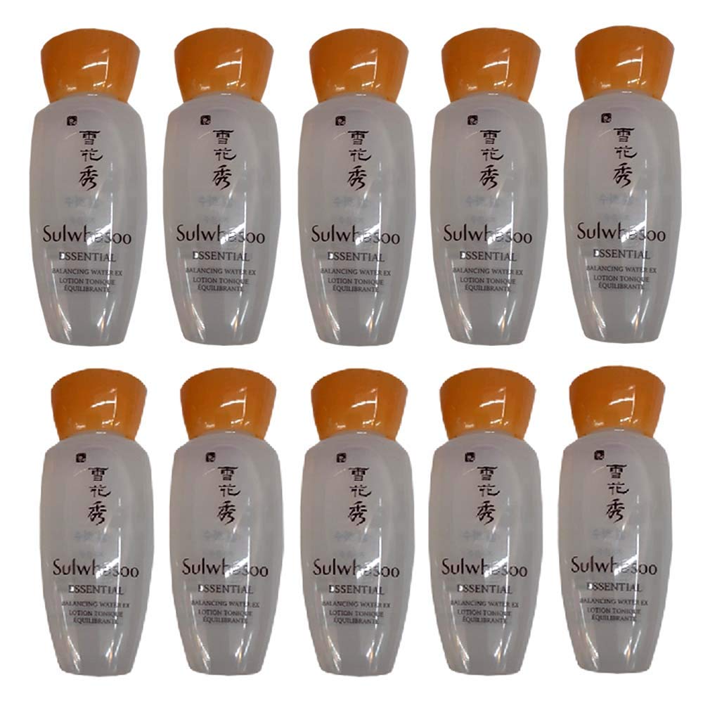 Korean Import- Sulwhasoo Essential Balancing Water 15ml x 10pcs (150ml) SUPER HUGE SAVINGS COMPARE THE FULL SIZE 125ml Price.....GREAT DEAL!!! Formulated with Korean medicinal herbs, this gel-textured water balances and delivers deep hydration. Matrimony Vine soothes and calms, promoting skin health and harmony Delivers deep hydration while immersing the skin...