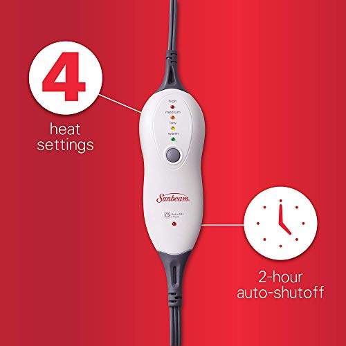 Details: Help arthritic pain and everyday muscle aches fade away with this Sunbeam King-Size Heating Pad with Digital LED Controller. This ultra-soft pad delivers extra coverage, comfort, and heat therapy.The 4 heat settings let you customize the level of intensity you need to begin feeling better. The pad also features a convenient 2-hour auto-off setting for peace of mind, and a 9-foot extra-long power cord so you can relax in your favorite spot.