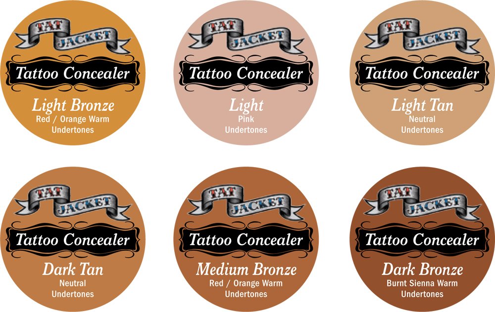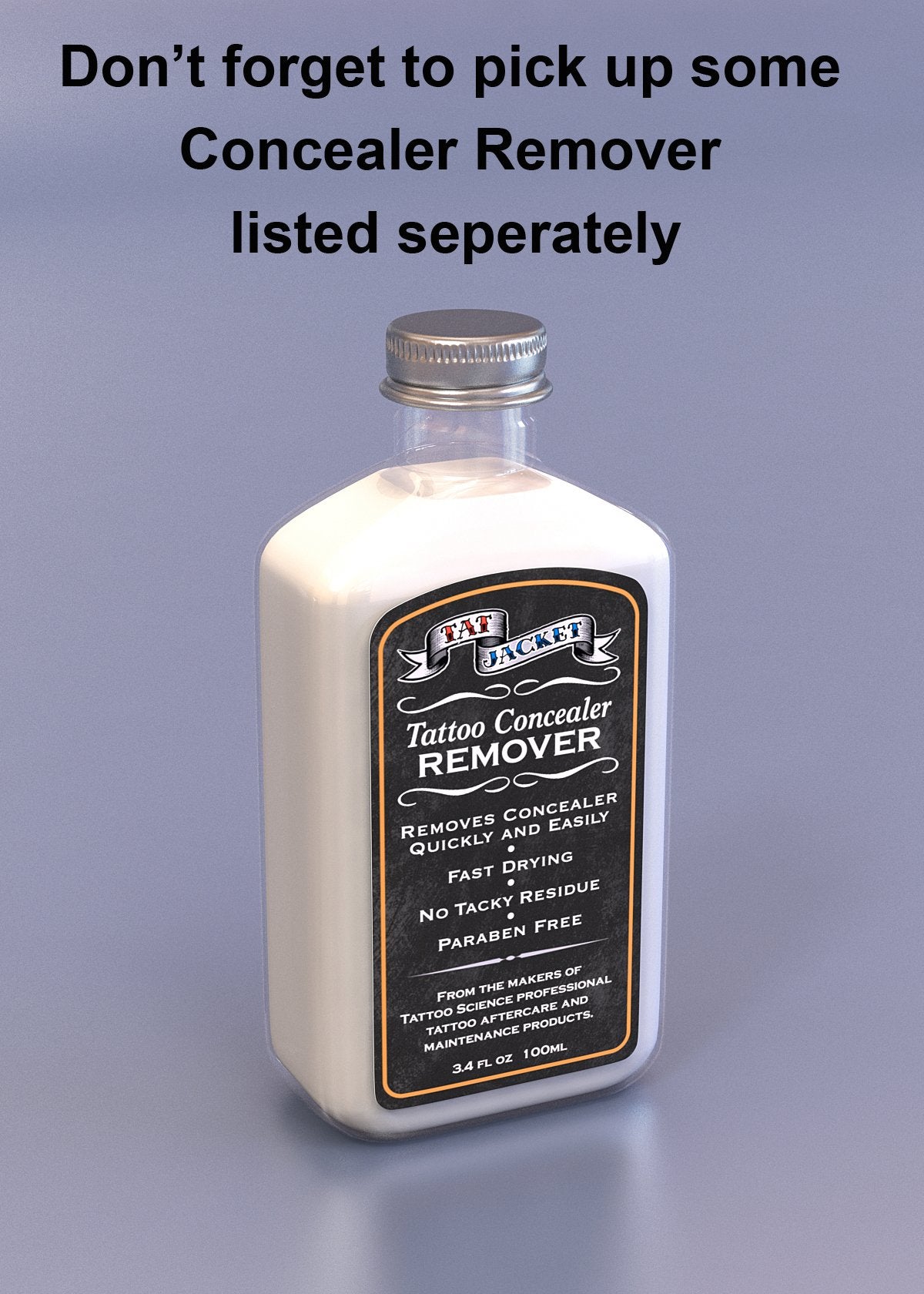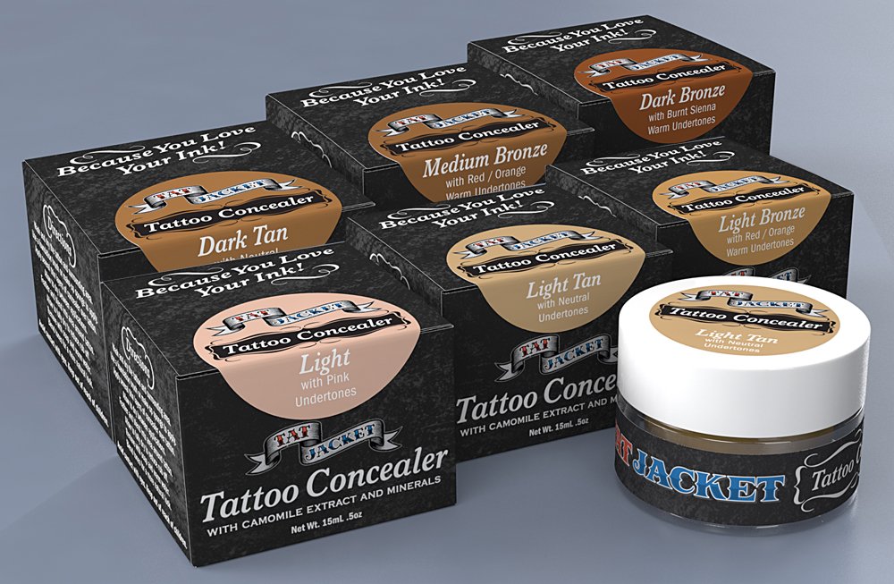 Easy, temporary concealment Protects Skin Prefect for Tattoo Care and Concealment Brand: Tatjacket The original concealer in dark tan from Tatjacket is perfect for tattoo maintenance, aftercare and concealment. Keep those tattoos clean and shiny and if your workplace requires concealment, Tatjacket has it.