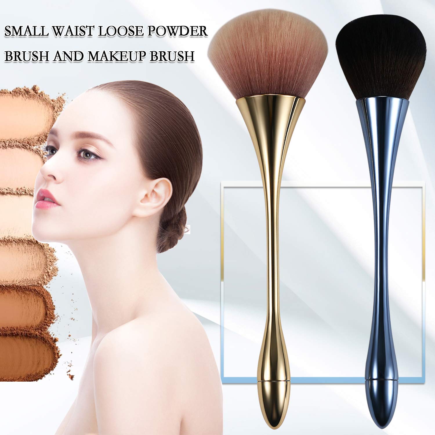 Vtrem 2 Pieces Large Powder Mineral Brush, Foundation Makeup Brushes, Face Brush for Large Coverage Loose Powder & Blush Blending Buffing (Gold & Blue)