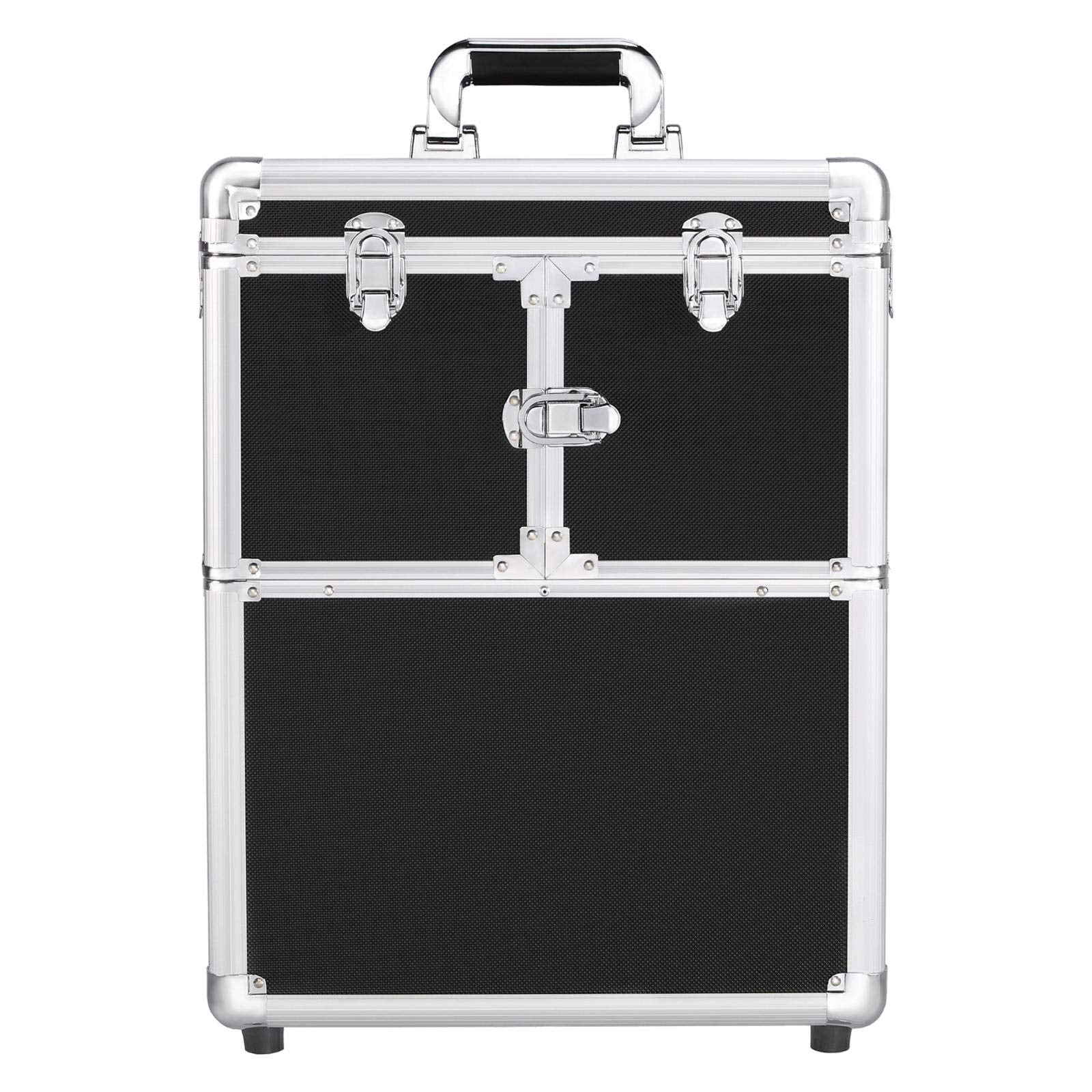 Yaheetech 19’’ Aluminum Trolley Makeup Case Rolling Beauty Cosmetic Lock Box w/Hand Black