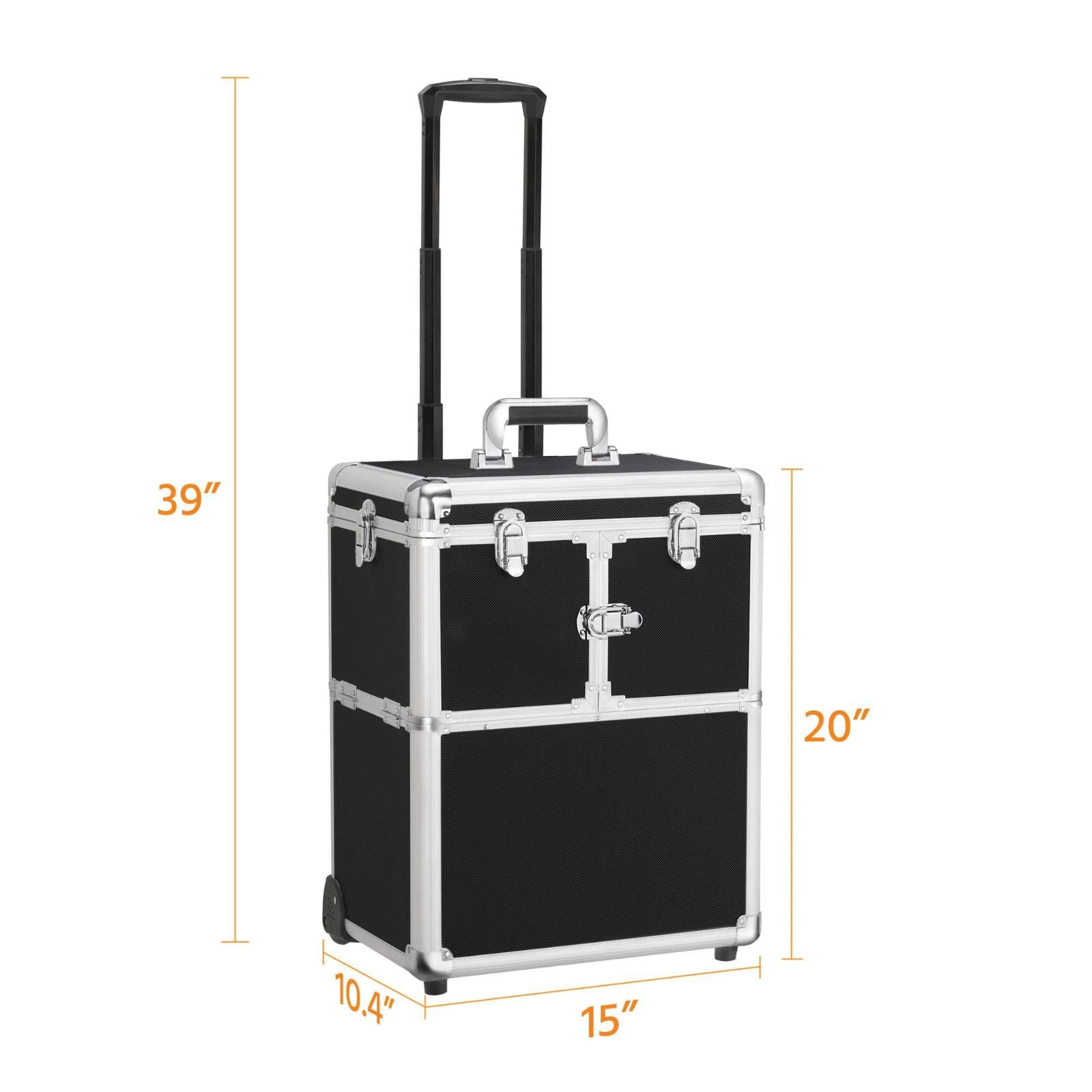 Yaheetech 19’’ Aluminum Trolley Makeup Case Rolling Beauty Cosmetic Lock Box w/Hand Black by YAHEETECH